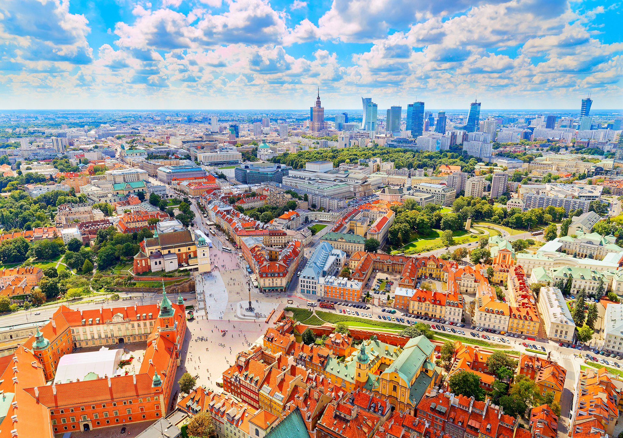 Widok na Stare Miasto, Plac Zamkowy oraz wieżowce w oddali z niezwykłej lotniczej perspektywy sprawi, że zakochasz się w Warszawie i poznasz ją jak nigdy wcześniej – w końcu z góry widać więcej – i z reguły lepiej.