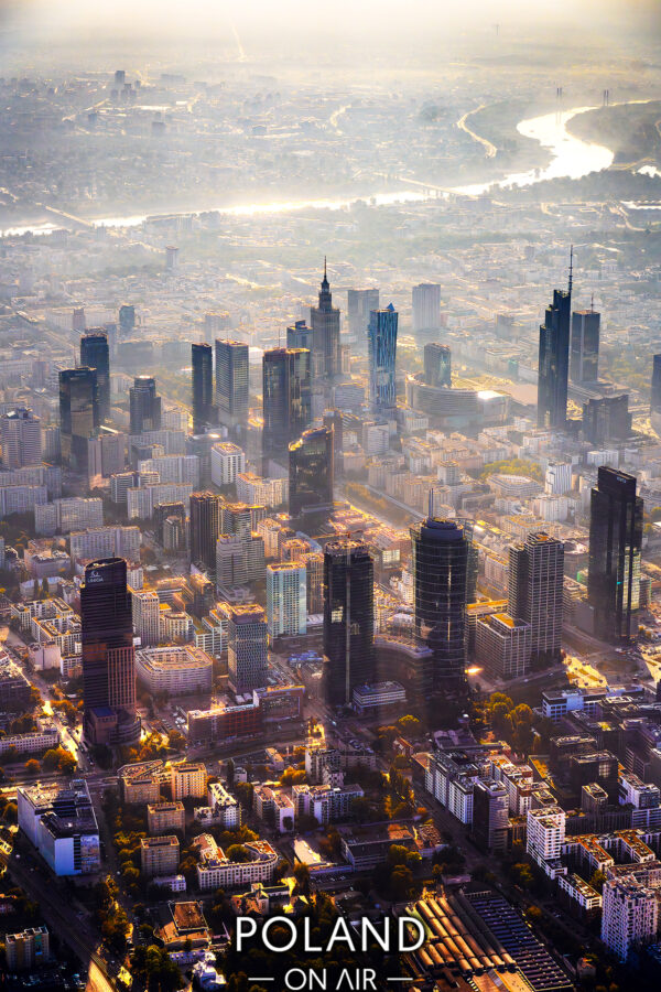 Warszawa z lotu ptaka o poranku.