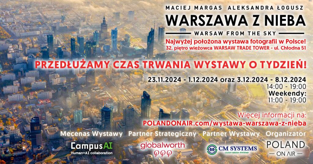 Wystawa trwa do 8.12.2024. Więcej informacji: Wystawa WARSZAWA Z NIEBA.